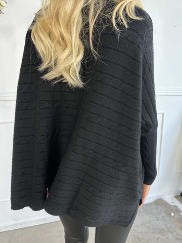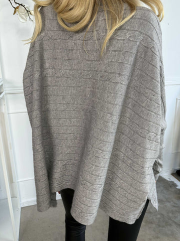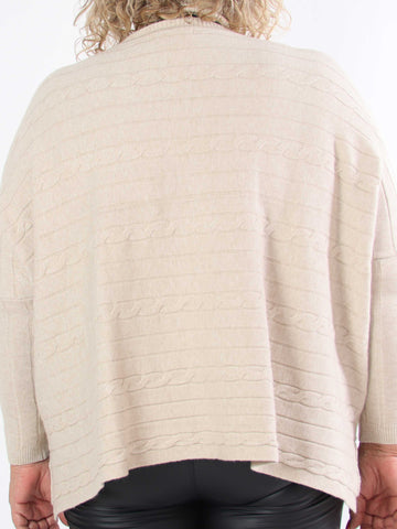 Johanna - Plus size strikbluse med kabelstrik i shiny strik