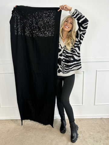 Maddy - Blødt tørklæde i viskose og uld med pailletter