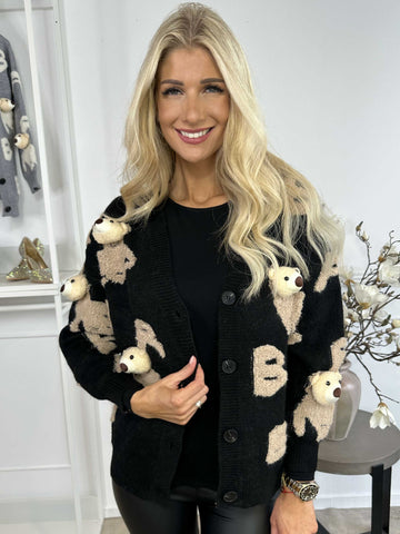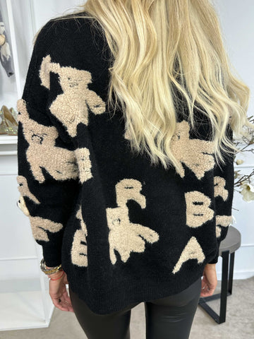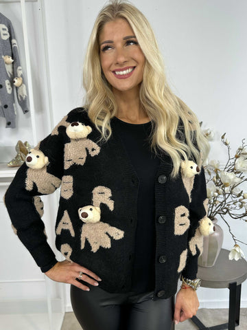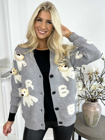 Kimberly - Sød tyk strikcardigan med sløjfer