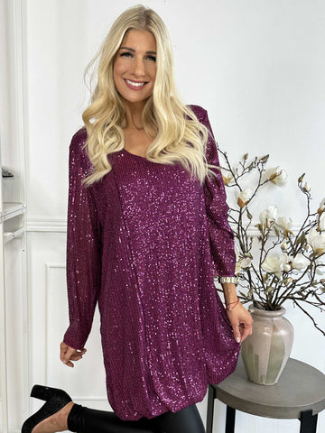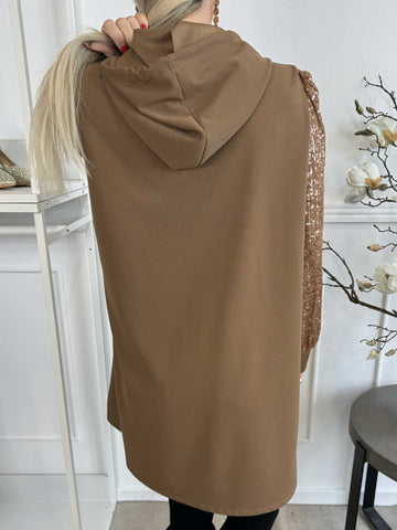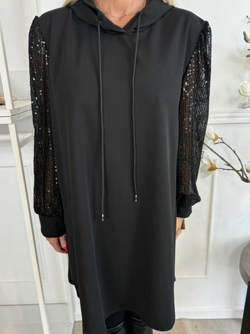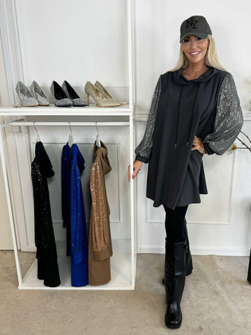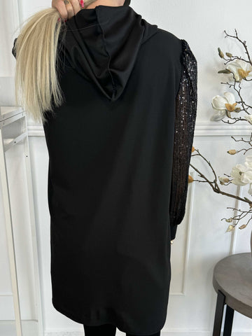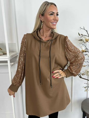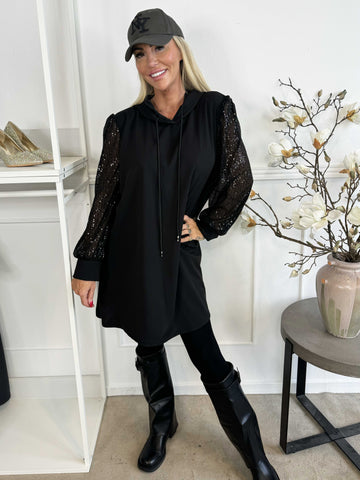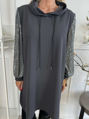 Adara - Ensfarvet hoodiekjole med pailletærmer