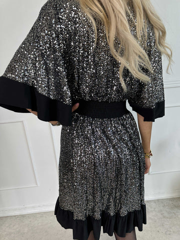 Pamela Glitter Short - Pailletkjole med flæser og smock