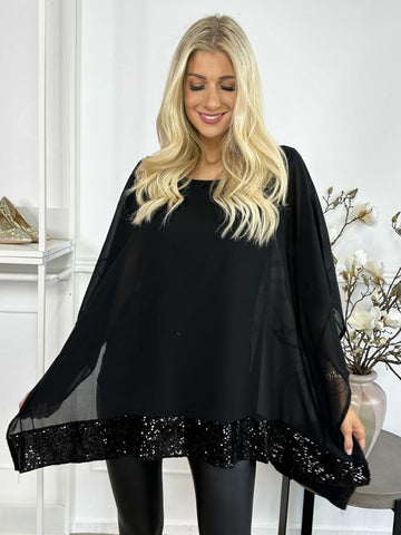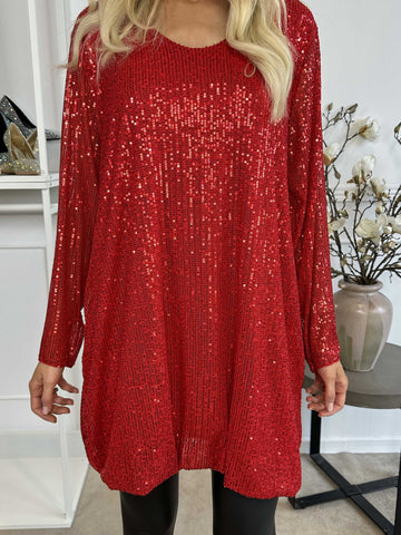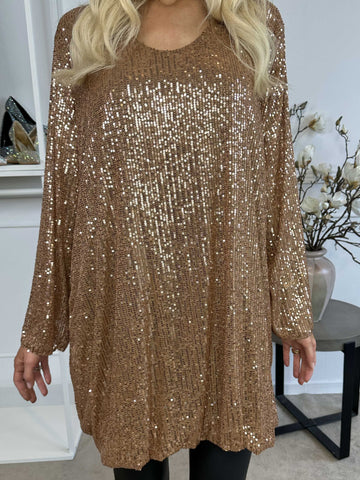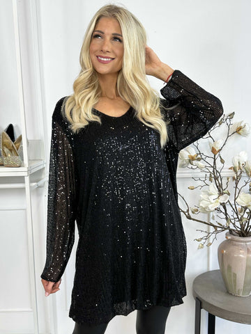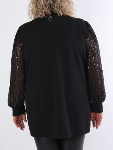 Pamela Glitter Shirt - Plus size paillettunika med smock og flæser
