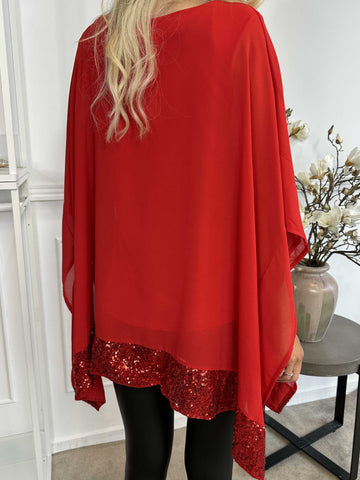 Pamela Glitter Shirt - Paillettunika med smock og flæser