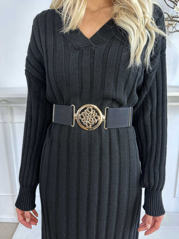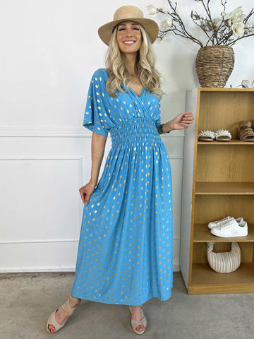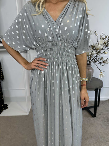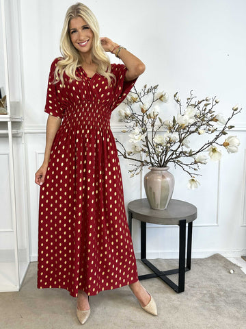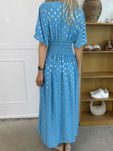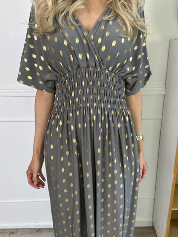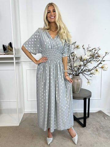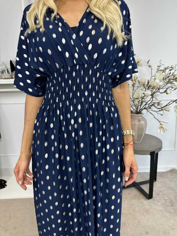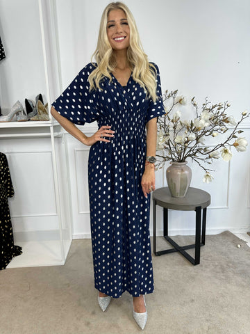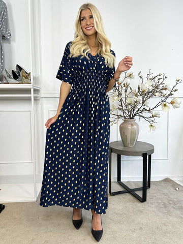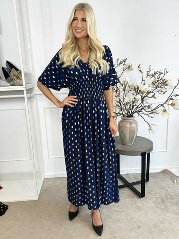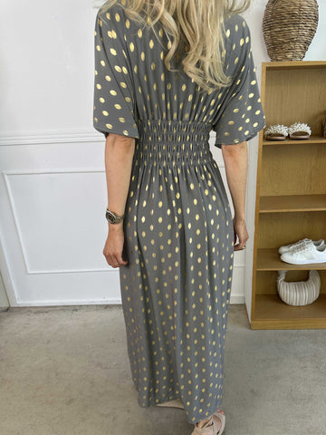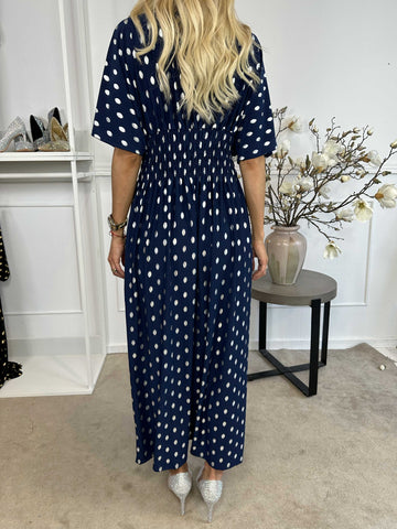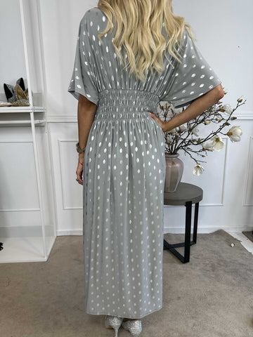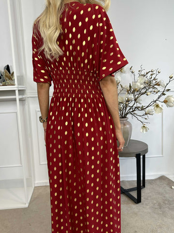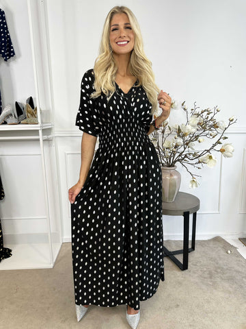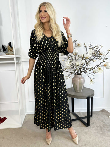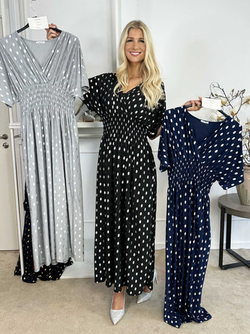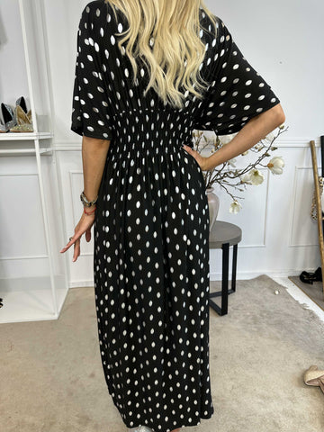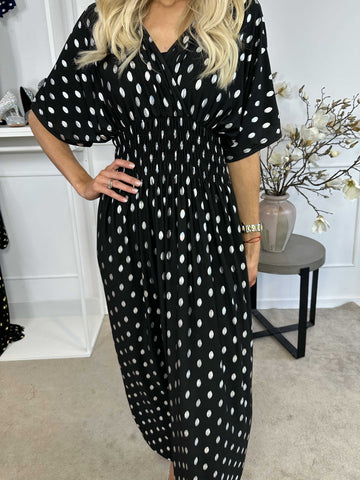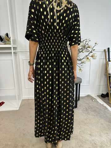 Pams Dot - Lang elastisk kjole med prikket detaljer
