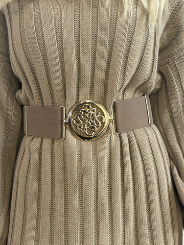 Pamela Gold Flower Short - Elastisk plus size kjole med smock og flæser