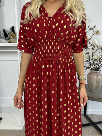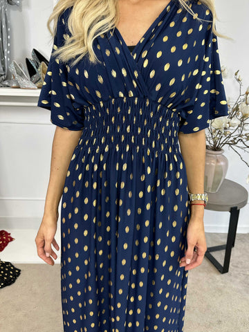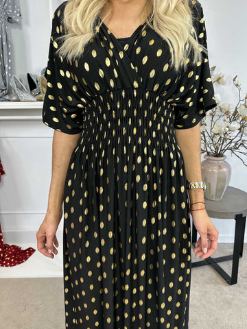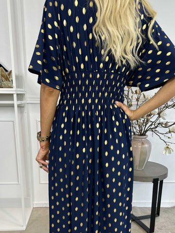 Pams Gold Dot Frills - Sød elastisk plus size kjole med flæser