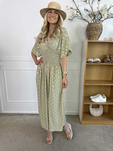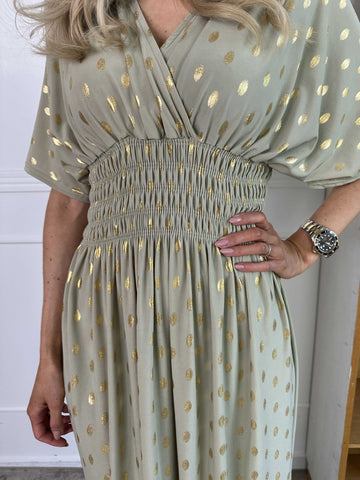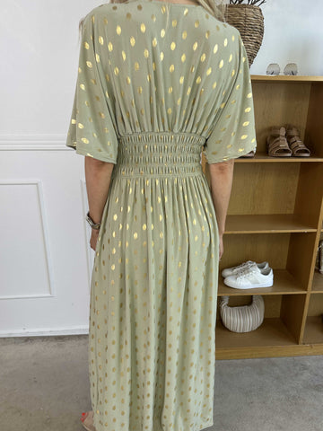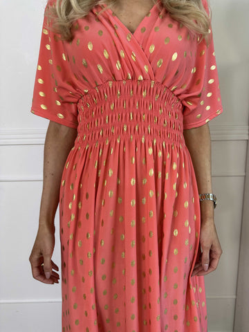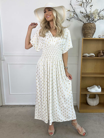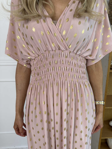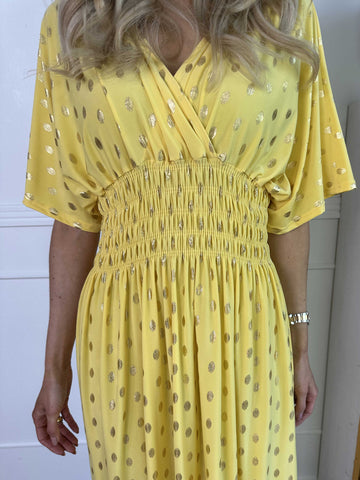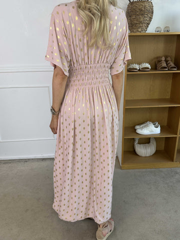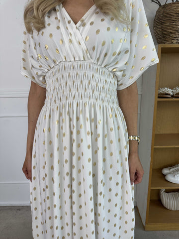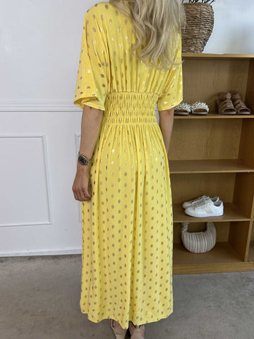 Pams Gold Dot Frills - Sød elastisk kjole med flæser
