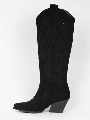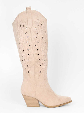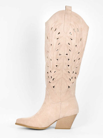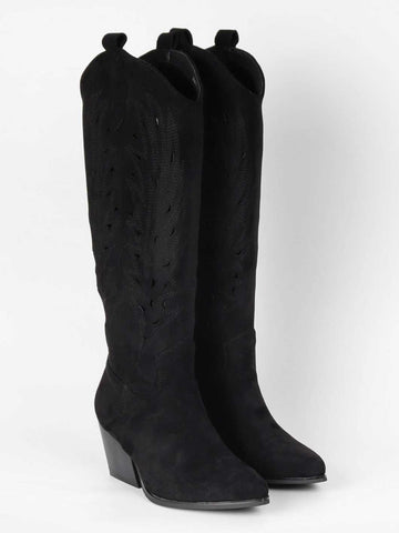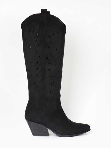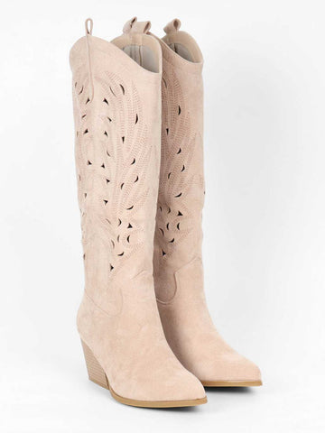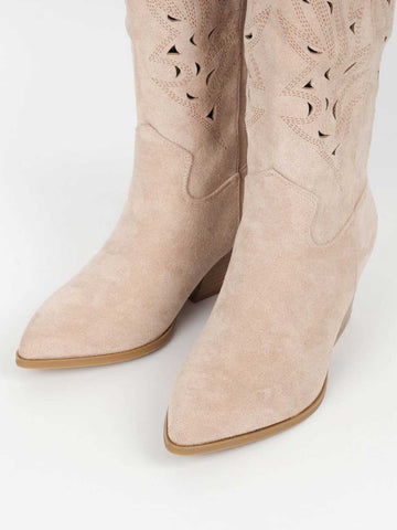 Damina - Cowboystøvler i ruskindslook med mønstret huller i