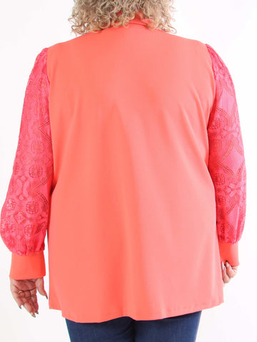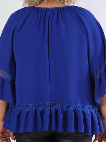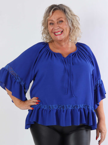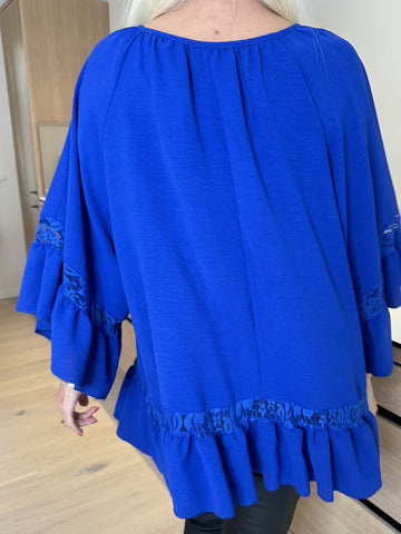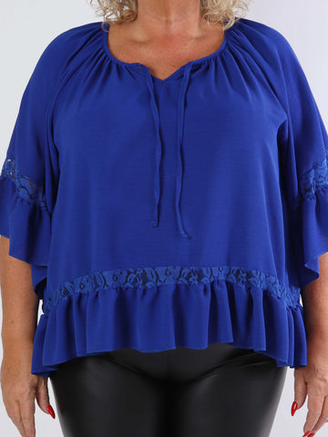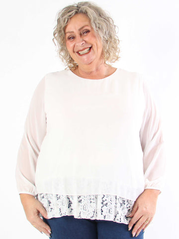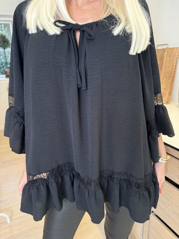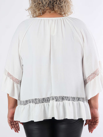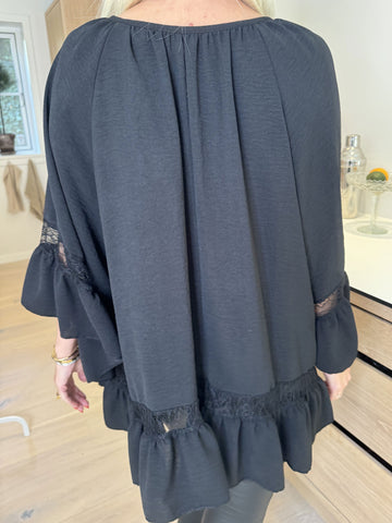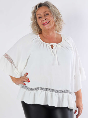 Achilla - Plus size tunika med blondekanter og flæser