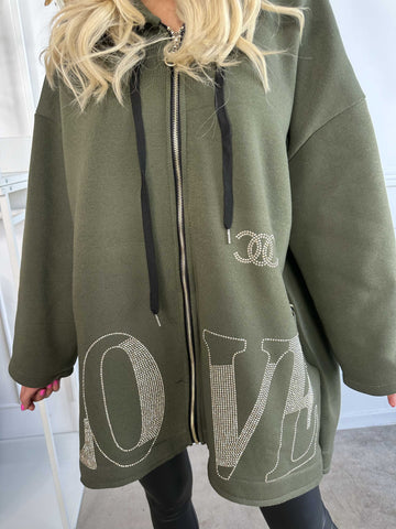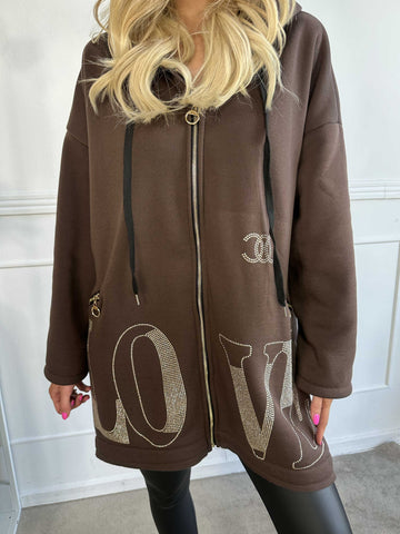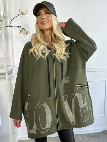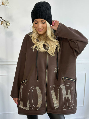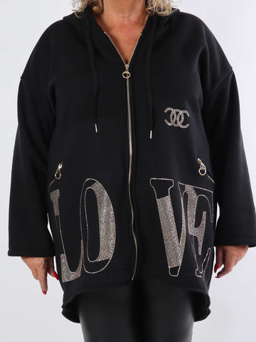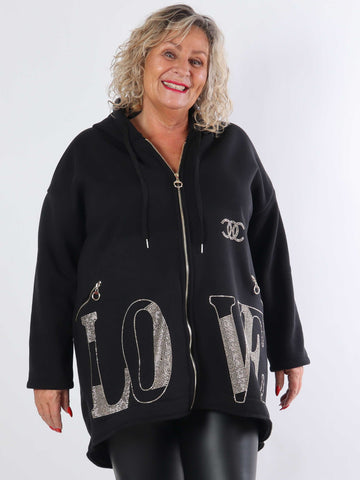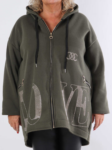 Adea - Blød plus size hoodie med lynlås og similisten