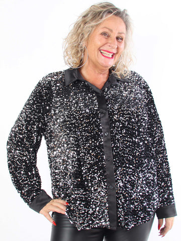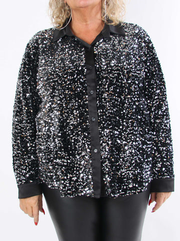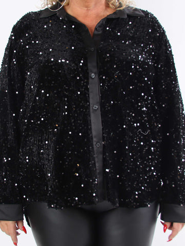 Anicha - Smuk plus size skjorte med pailletter og velour