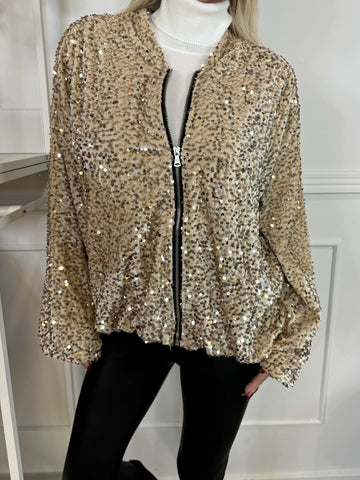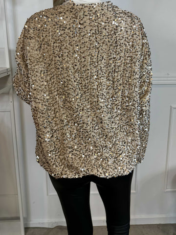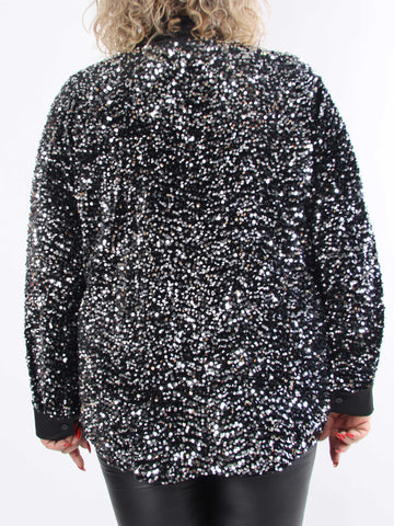 Francini - Trøje i velour med pailletter og lynlås