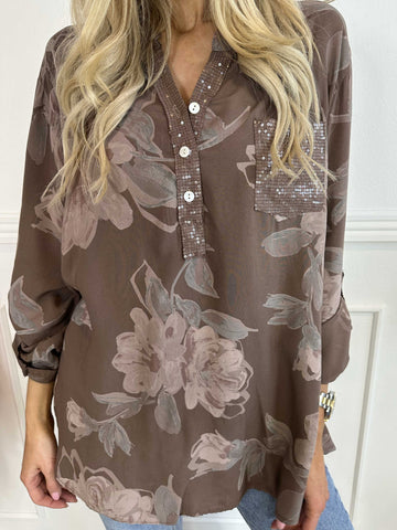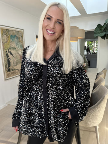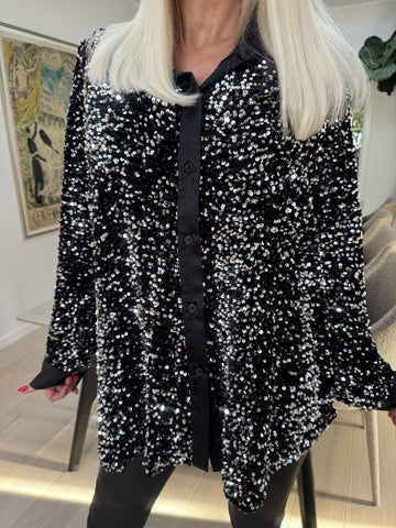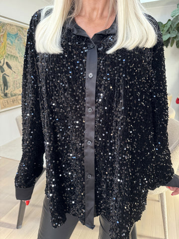 Anicha - Smuk skjorte med pailletter og velour