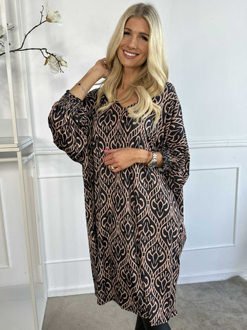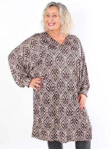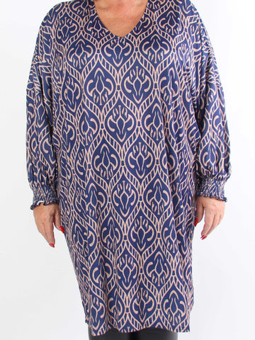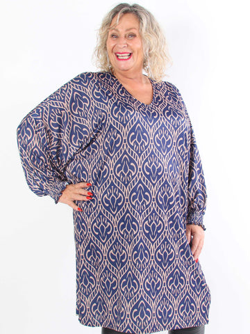 Azmina Boho L/S - Elastisk plus size tunikakjole i loose fit