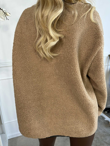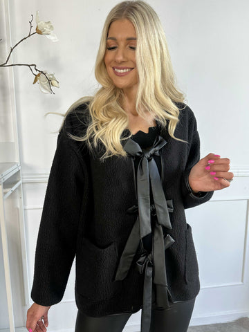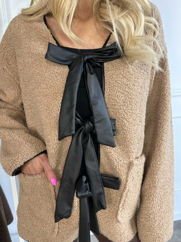 Danya - Sød fleece cardigan med læderlook sløjfer