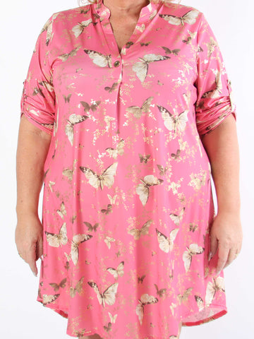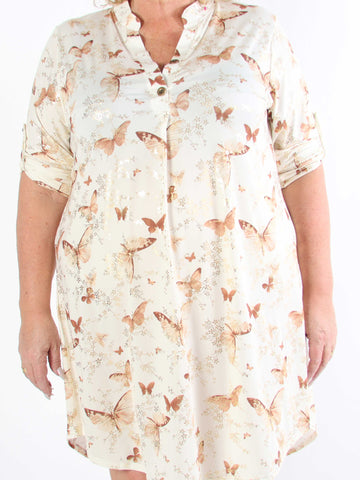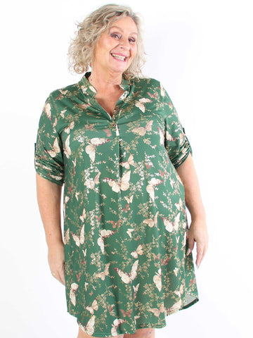 Ebba Butterfly - Elastisk plus size kjole med sommerfugle