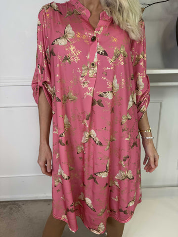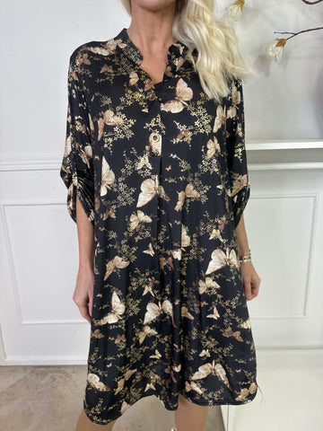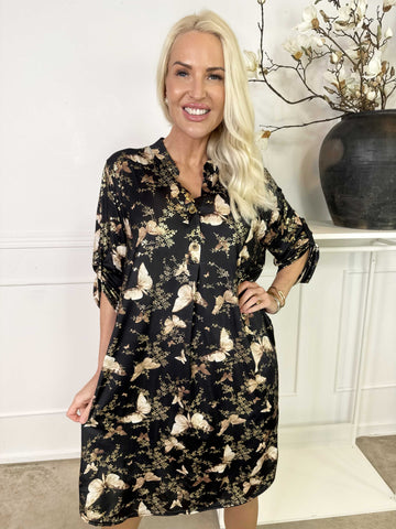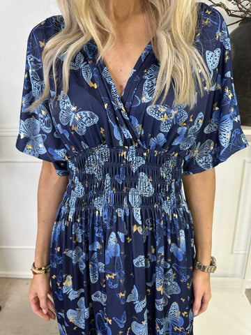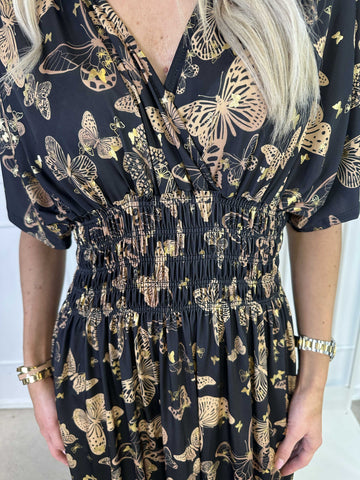 Ebba Butterfly - Elastisk kjole med guld detaljer og sommerfugle