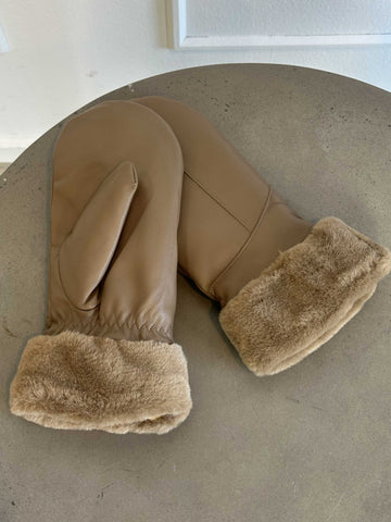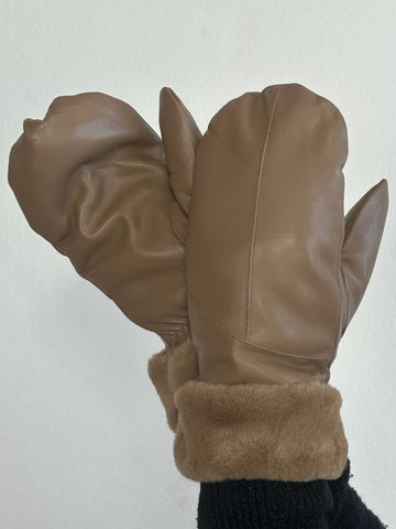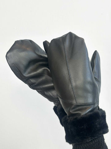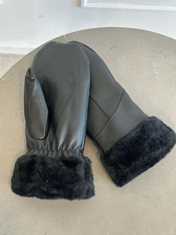 Helina - Sorte læderlook luffer med blødt foer