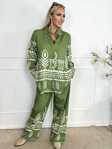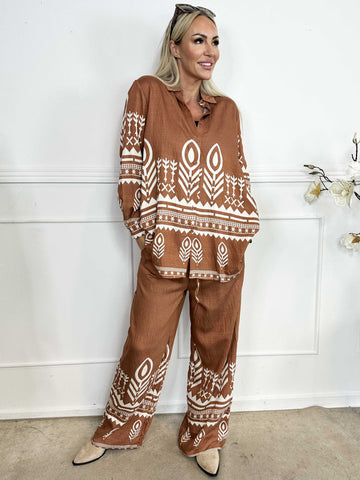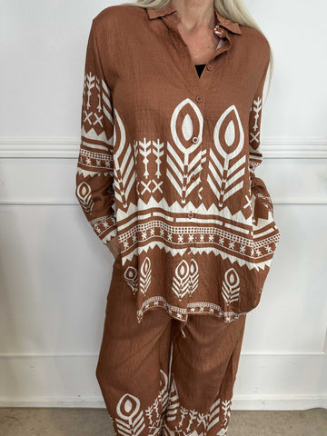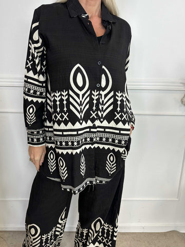 Vonnie - Mønstret skjorte sæt lavet i viskose