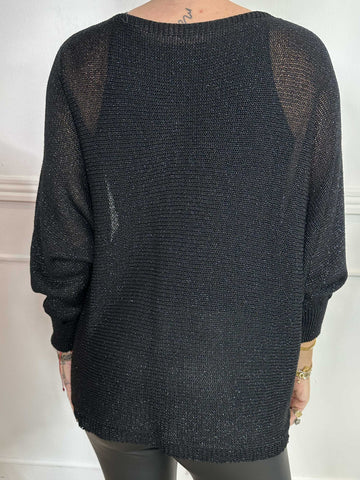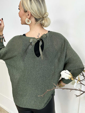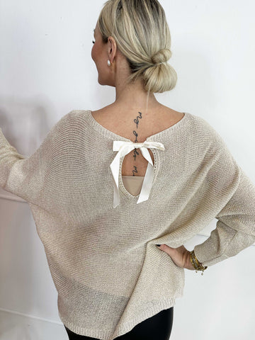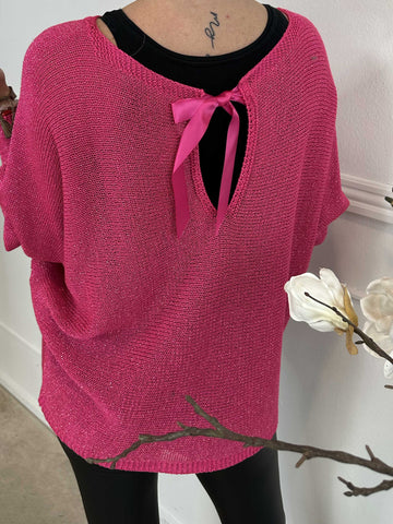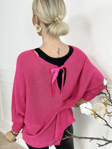 Paulina - Strikbluse med glimmertråde og sløjfe