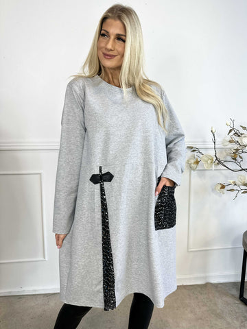Micha - Plus size kjole i bomuld pyntet med pailletter