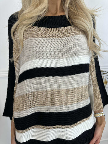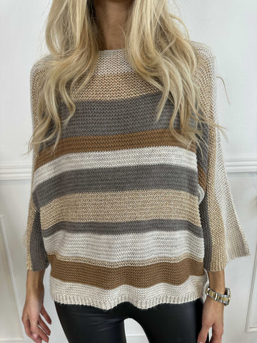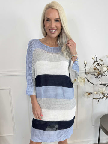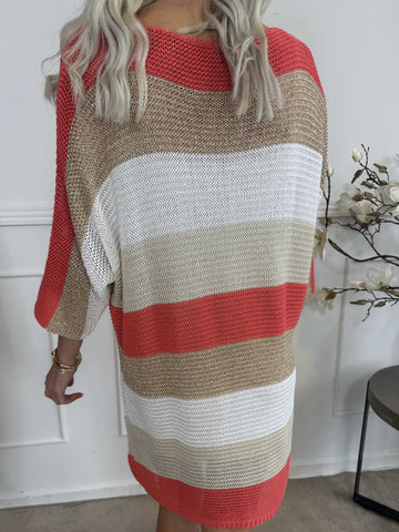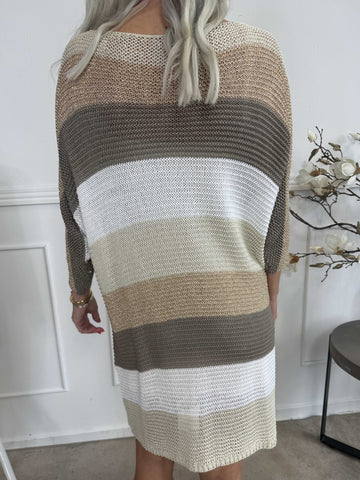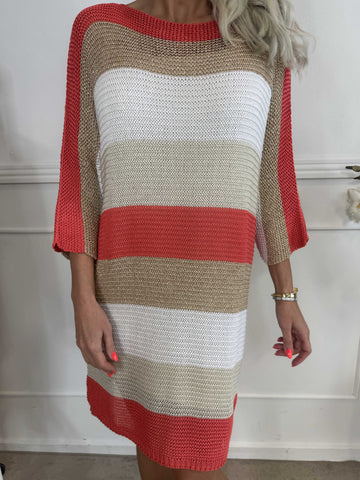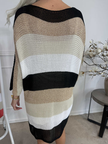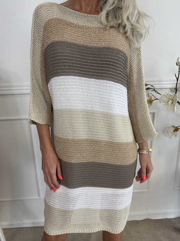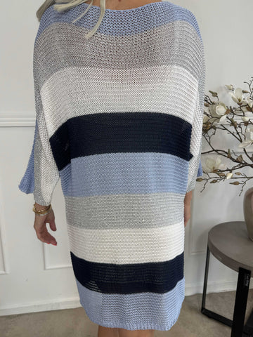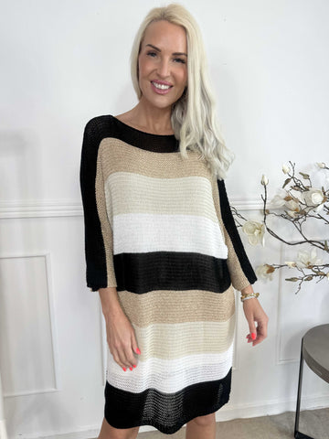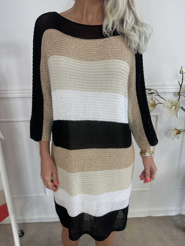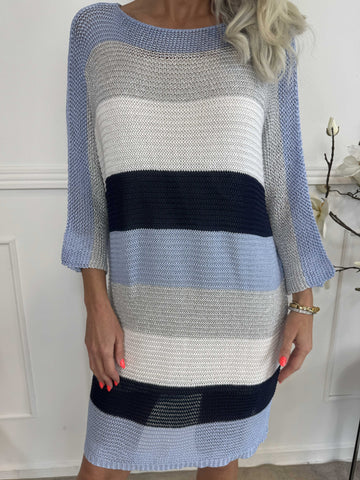 Nina Long - Stribet strikkjole med glittertråde