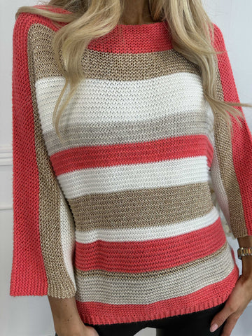 Nina - Strikbluse med uld og guld striber