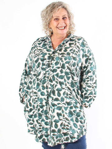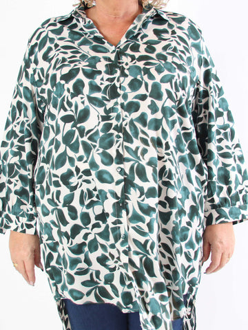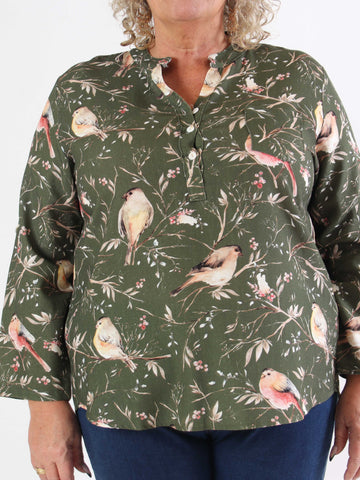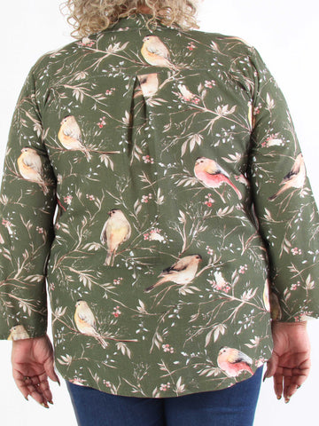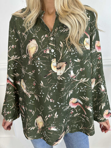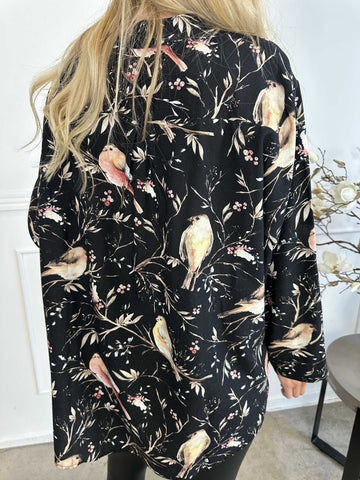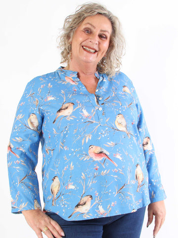 Carmen - Plus size skjorte med fugle lavet i hør og bomuld