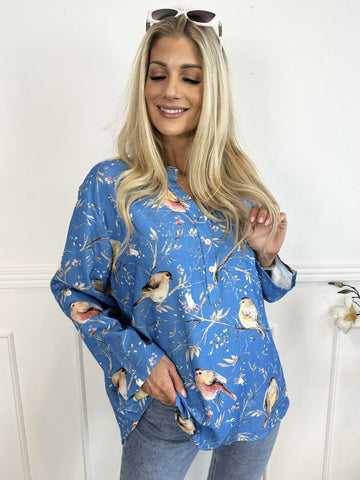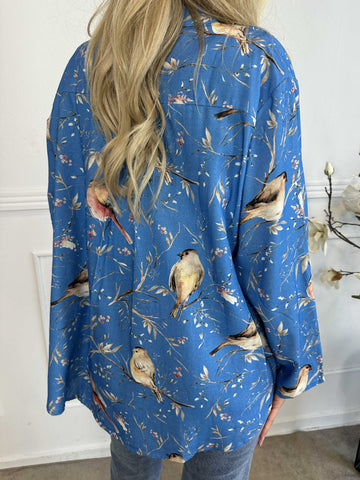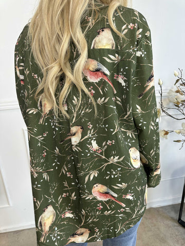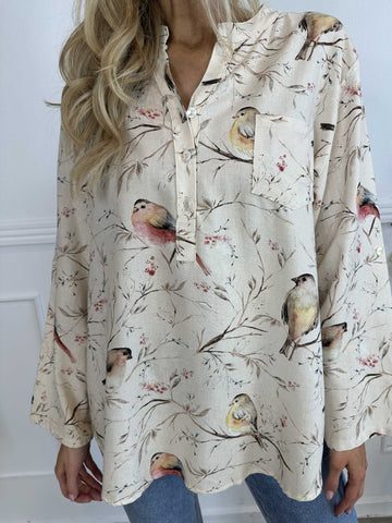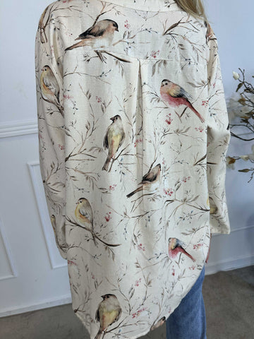 Carmen - Skjorte med fugle lavet i hør og bomuld