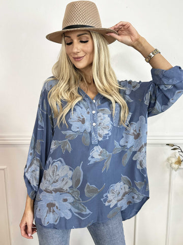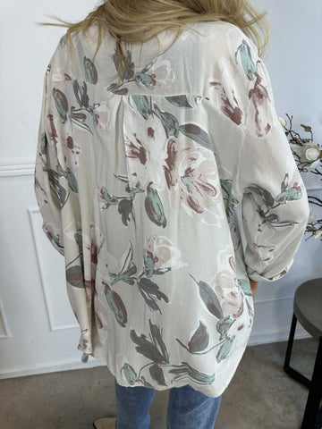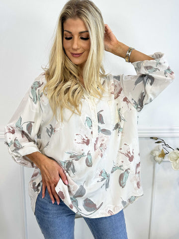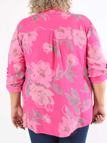 Ella - Sød plus size tunika i viskose med blomster motiver