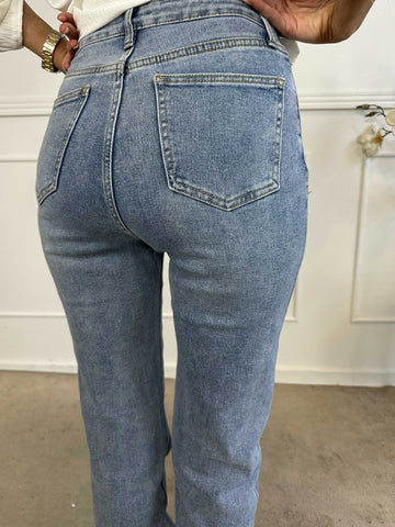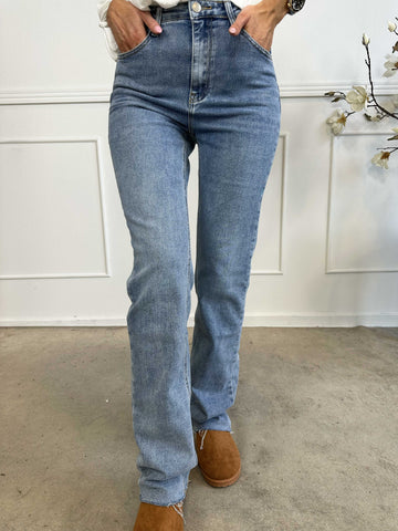 Simona - Højtaljede ekstra lange jeans med stræk