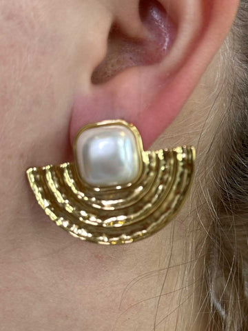 Samantha - Guldfarvet øreringe med firkantet perle