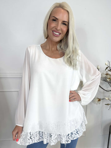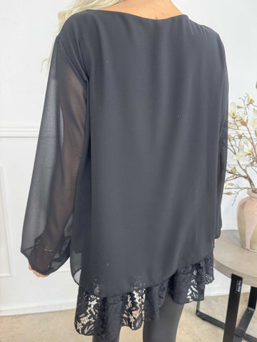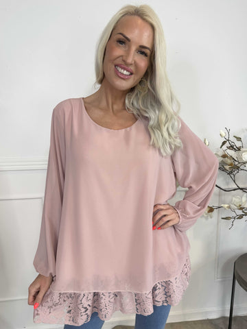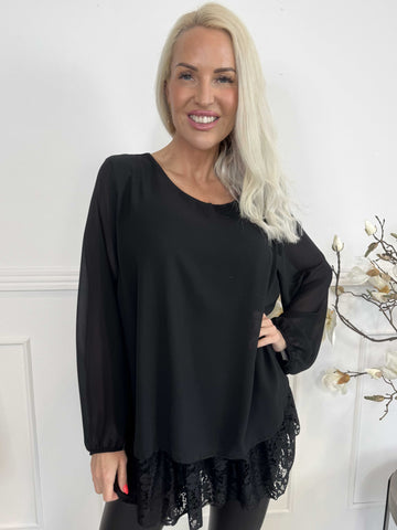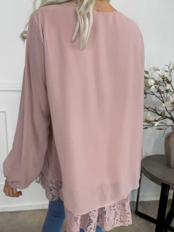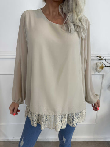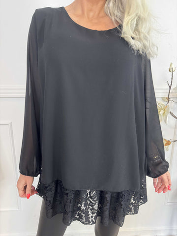 Luby Lace - Tunika i chiffon med blondekant forneden