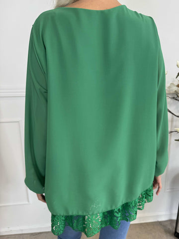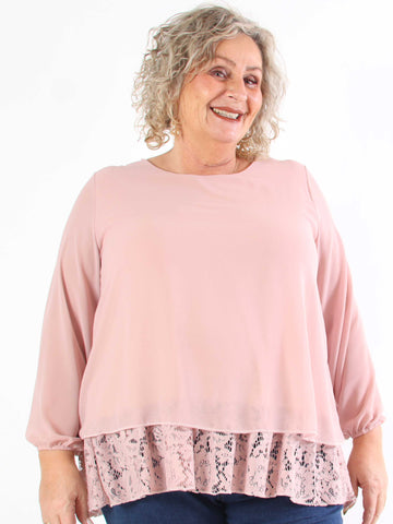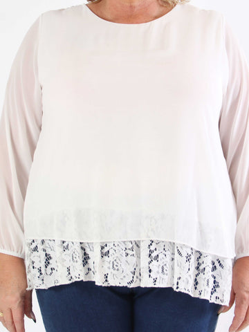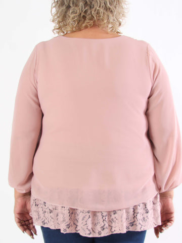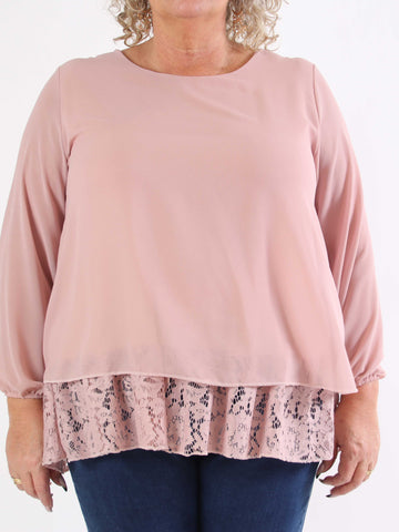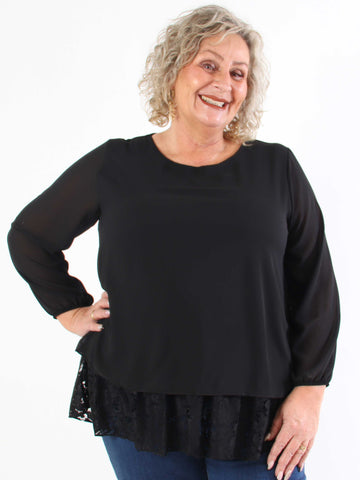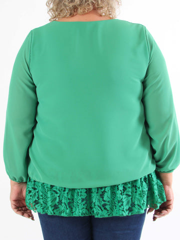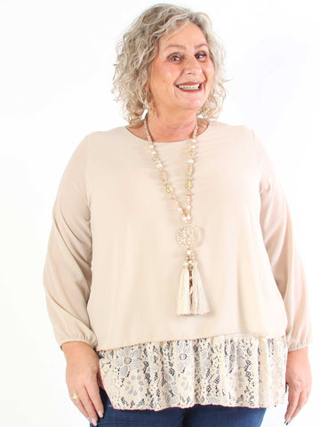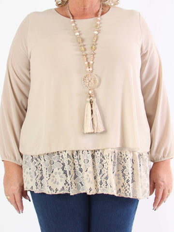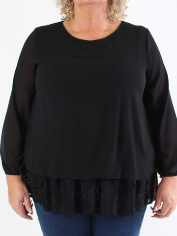 Luby Lace - Plus size tunika i chiffon med blondekant forneden