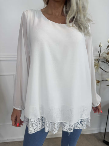 Achilla - Tunika med blondekanter og flæser