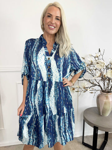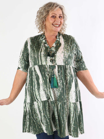 Milano Wave Midi - Plus size kjole med mønster og lag på lag look