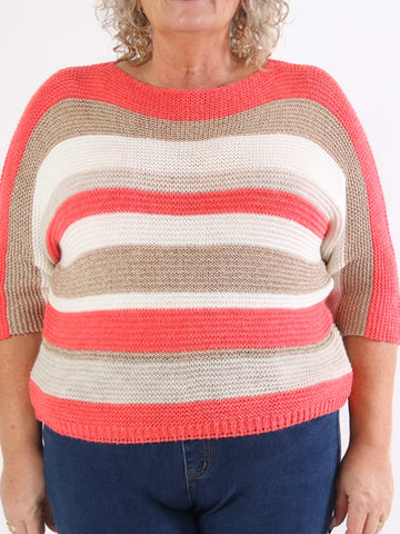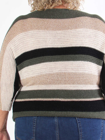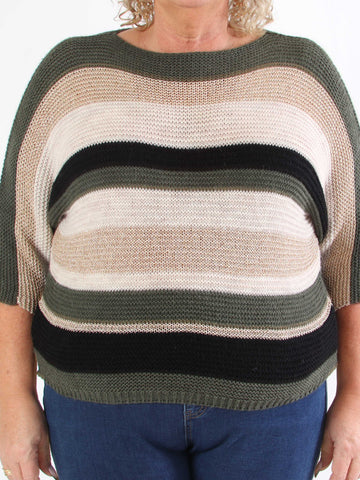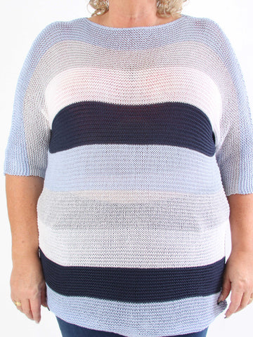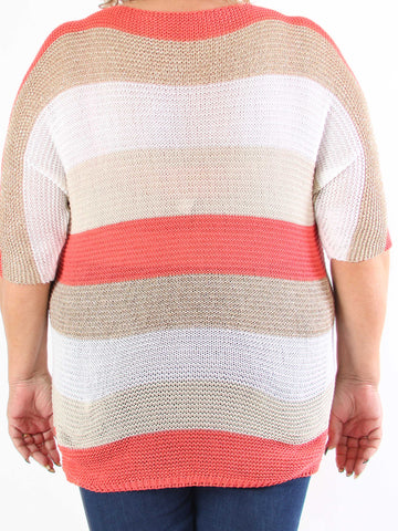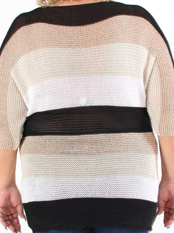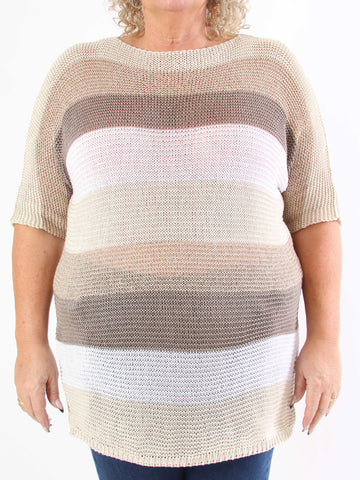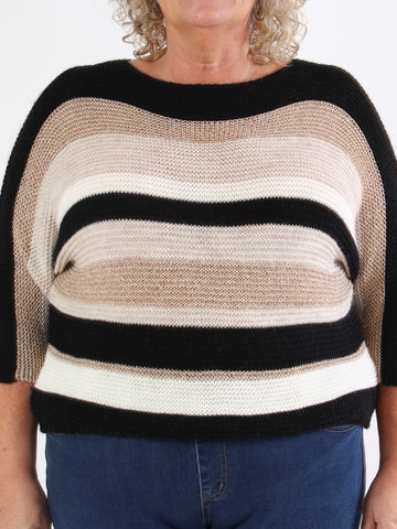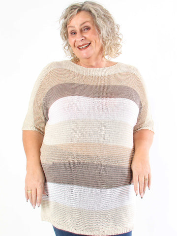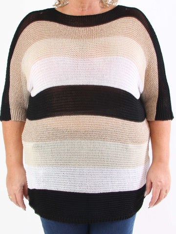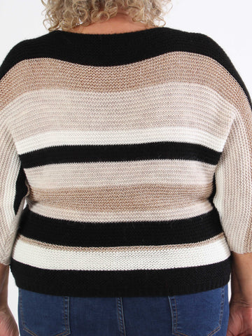 Nina - Plus size strikbluse med uld og guld striber
