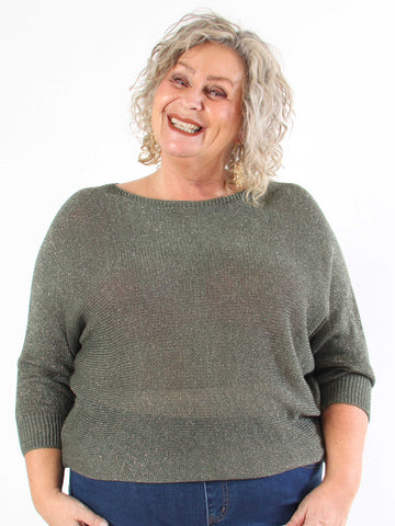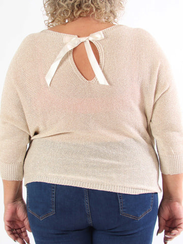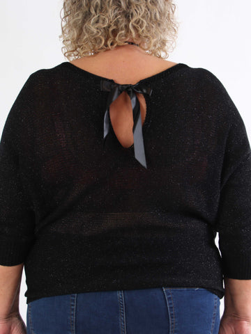 Paulina - Plus size strikbluse med glimmertråde og sløjfe