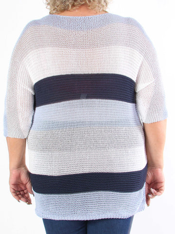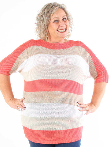 Nina Long - Stribet plus size strikkjole med glittertråde