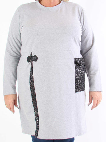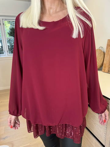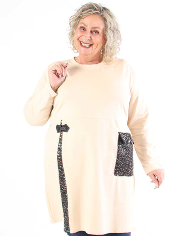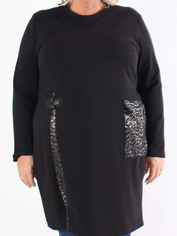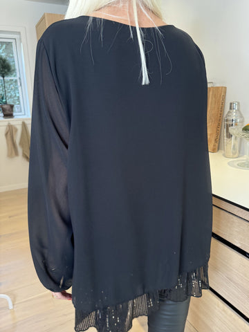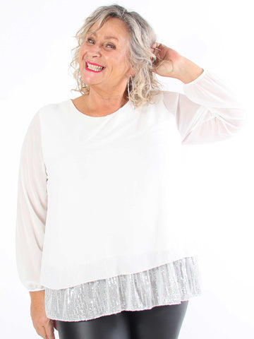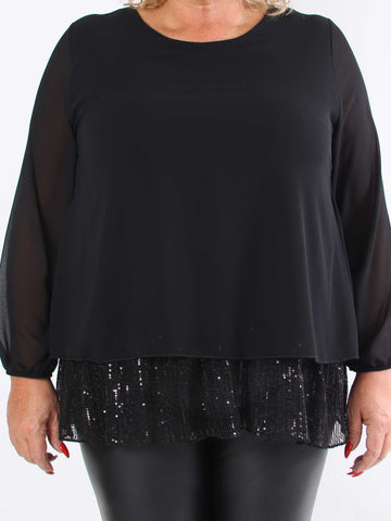Luby - Plus size tunika i chiffon med pailetter forneden