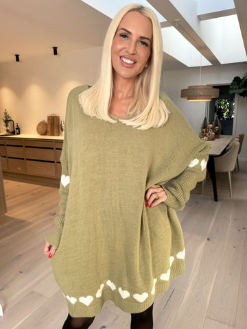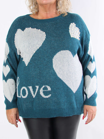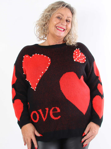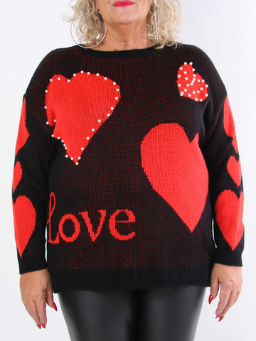 Valeria - Sød plus size strik med hjerter og perler
