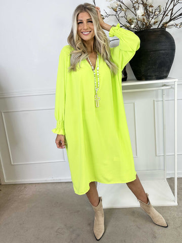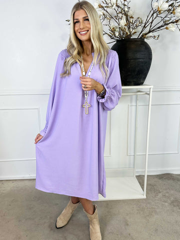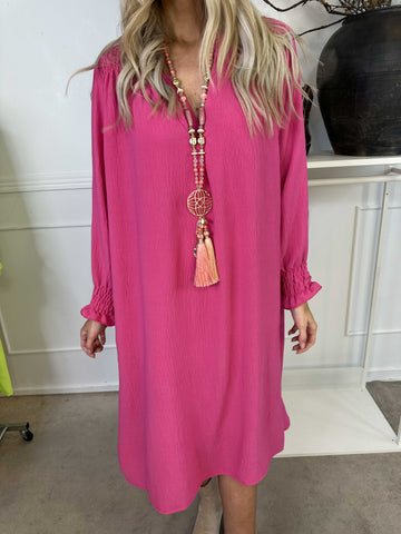 Marisol - Sød kjole med smock og v-udskæring