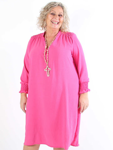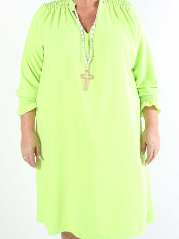 Marisol - Sød plus size kjole med smock og v-udskæring
