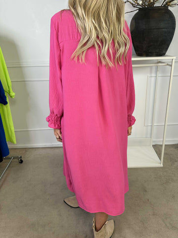 Pams Berry - Lang elastisk kjole med smock i livet