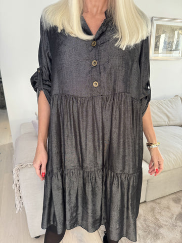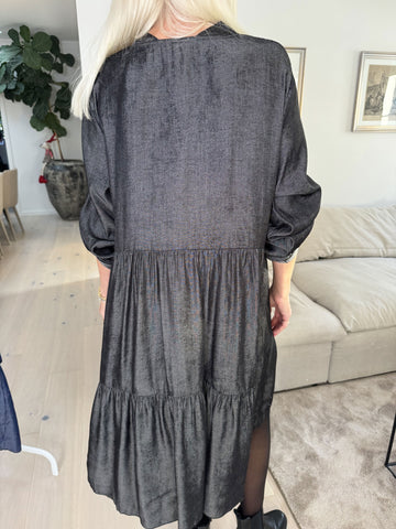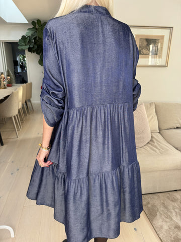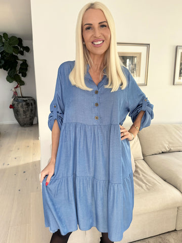 Milano Denim Midi - Sød kjole i viskose med lag på lag look