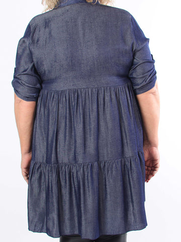 Milano Denim Midi - Plus size kjole i viskose med lag på lag look