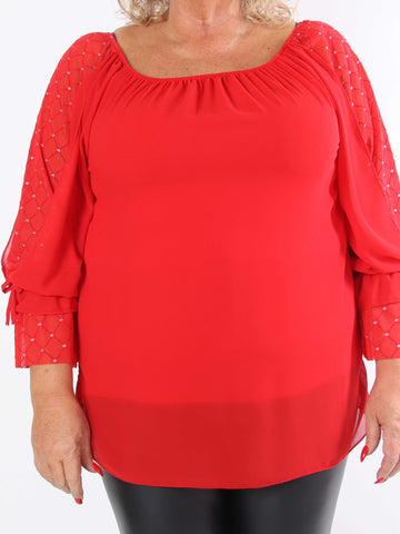 Ninell - Plus size chiffontunika med flotte ærmer