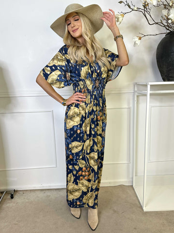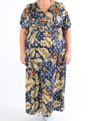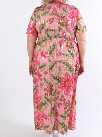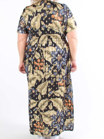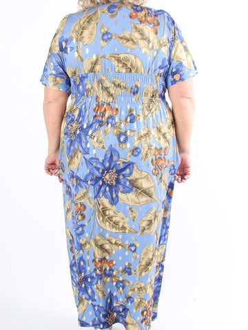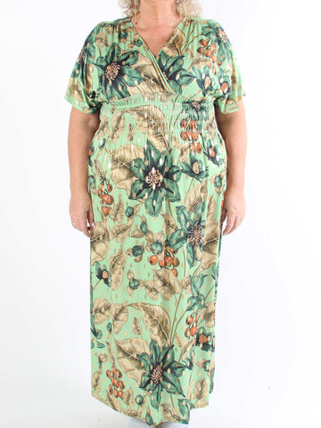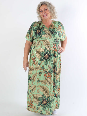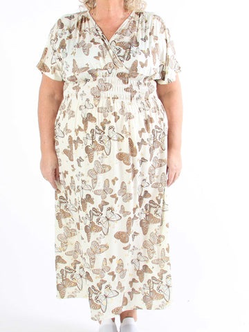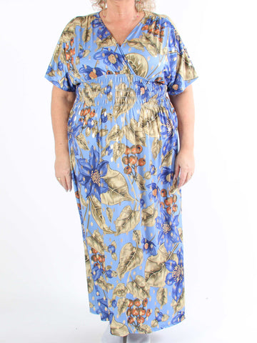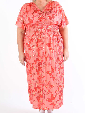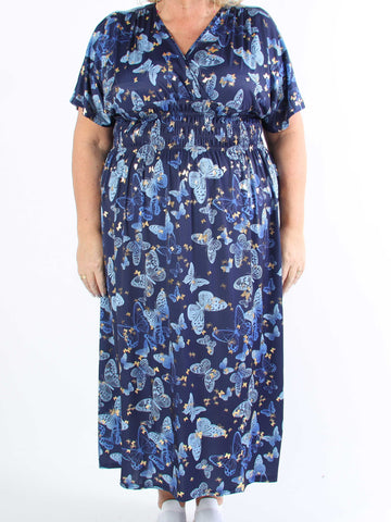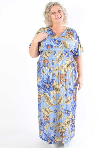 Pams Butterfly - Lang elastisk plus size kjole med smock i livet