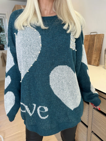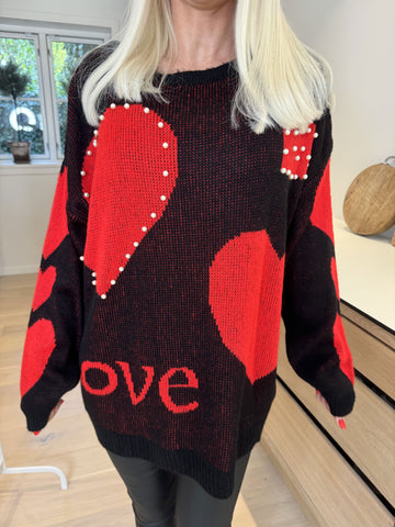 Valeria - Sød strikbluse med hjerter og perler