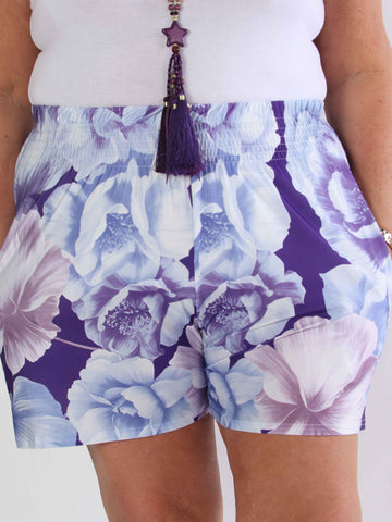 Pams Flower Shorts - Elastiske plus size shorts med blomsterprint